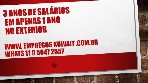 Resumindo: você poderá mandar para a sua família no Brasil até 100% do seu salário pois lá seu custo de vida será ZERO..........e terá um CRESCIMENTO em sua carreira profissional com promoções rápidas , basta merecer.